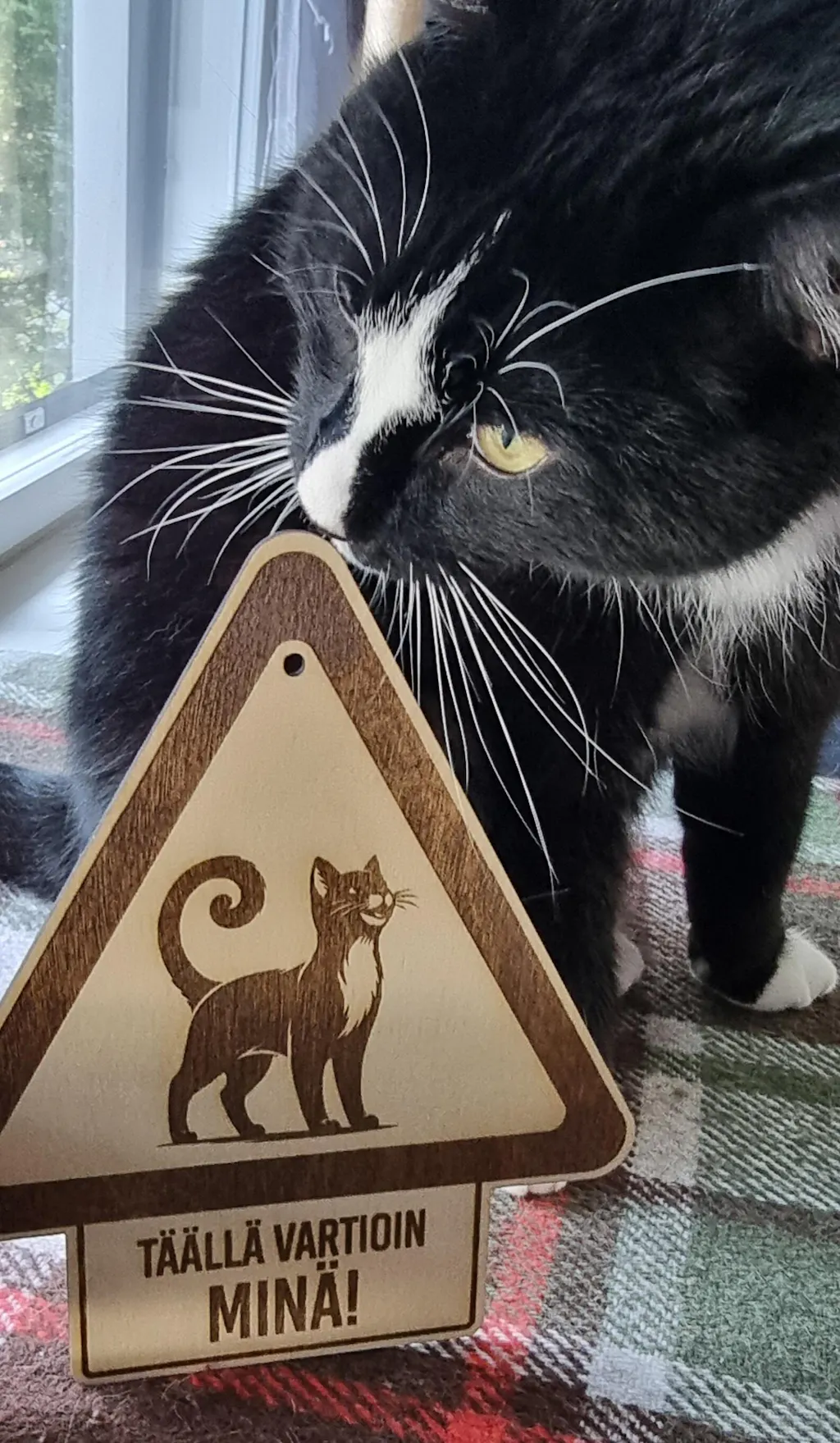 Kyltit on valmistettu vanerista, joka on lähtökohtaisesti tarkoitettu sisäkäyttöön. Se kestää suojattuna kuitenkin ulkona sateelta ja auringolta suojaisassa paikassa. Mikäli tuote on tulossa ulos, suosittelemme lakkauksen lisäämistä tuotteeseen joko meidän kauttamme, tai kotona itse ennen ulos sijoittamista.